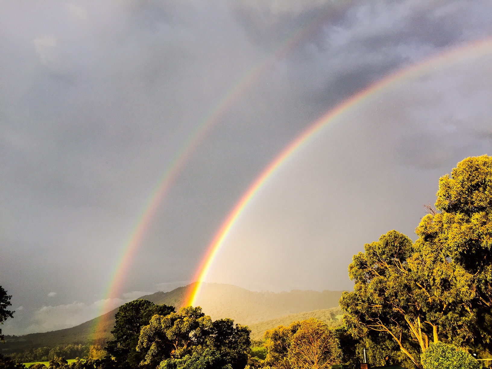 And earlier in the afternoon we were treated to a double rainbow. 🙂